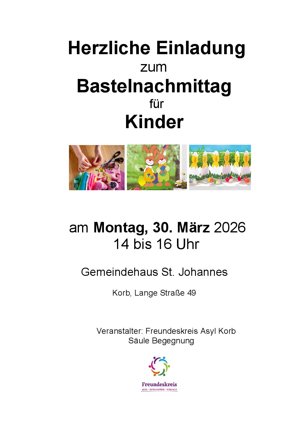Liebe Mitglieder und Freunde unseres Vereins, auch in diesem Jahr möchten wir vor Ostern gerne alle Kinder zu einem Bastelnachmittag einladen.